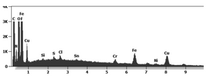 Figures 15 and 16 below show a micrograph of different micro and nano particulates which have been identified and analyzed under an Environmental Scanning Electron Microscope coupled with an x-ray microprobe of an Energy Dispersive System that reveals the chemical nature of the observed micro and nano particulates.