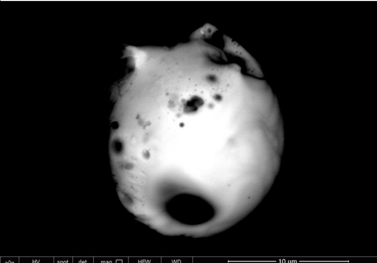 Figure 4 shows the liposome Capsid containing rGO that Pfizer uses for its product to vehiculate the graphene oxide by attaching the Liposome capsid to specific mRNA molecules for driving the Liposome contents of fGO to specific organs, glands and tissues, namely the ovaries and testes, bone marrow, heart and brain. The image was obtained by a SEM-Cryo preparation.
