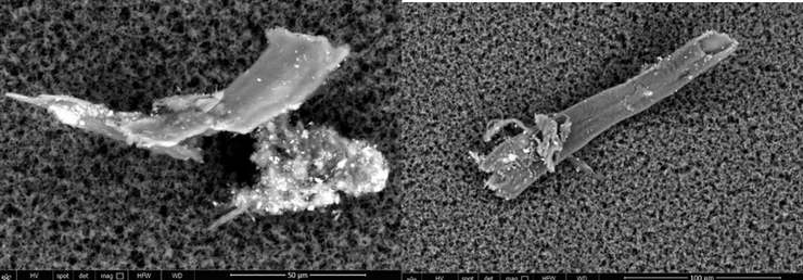 Transmission Electron Microscopy and quantified with an x-ray microprobe of an Energy Dispersive System revealed the chemical nature of the observed micro and nano particulates.